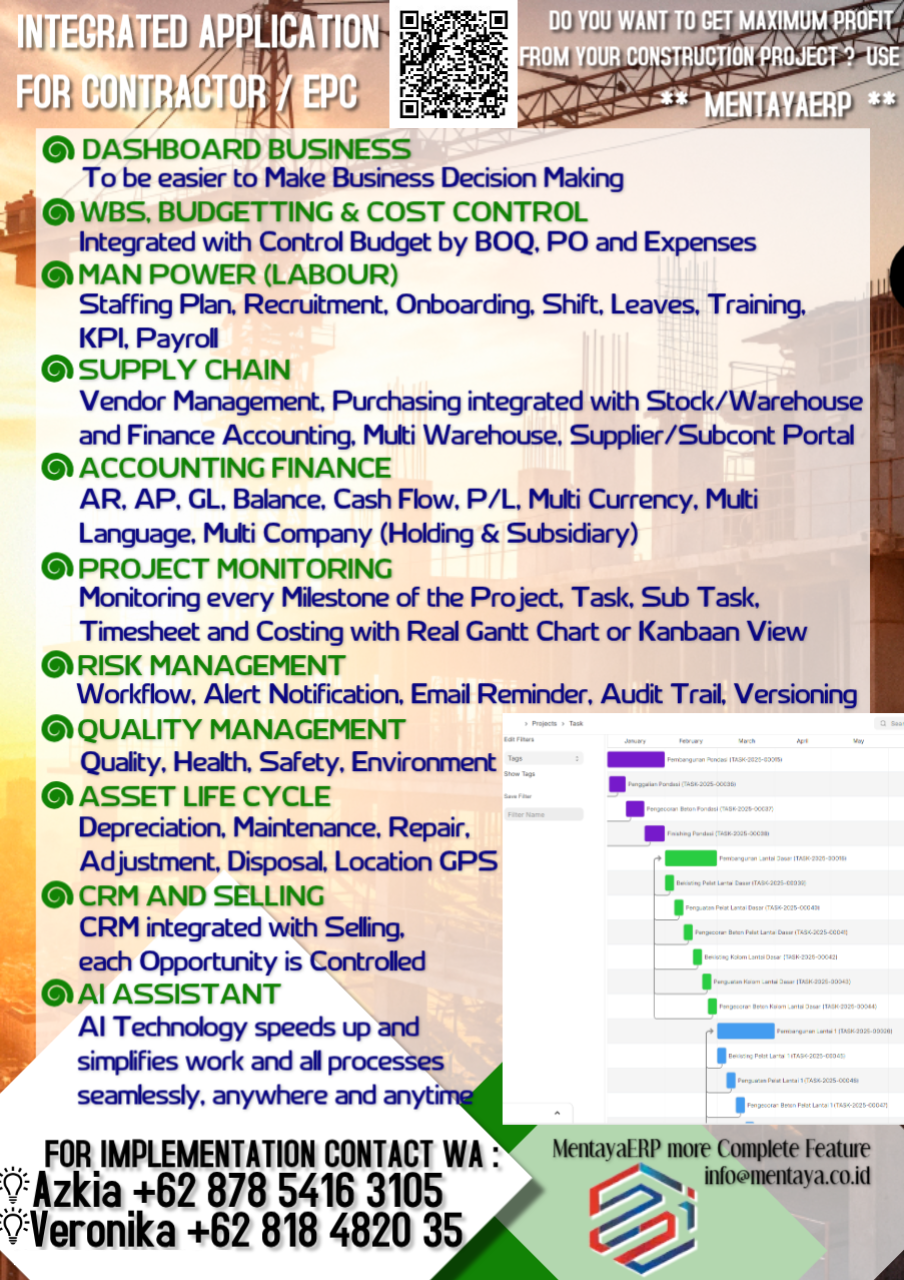 Rampingkan perusahaan Anda dengan Perangkat Lunak MentayaERP Konstruksi, EPC, Kontraktor