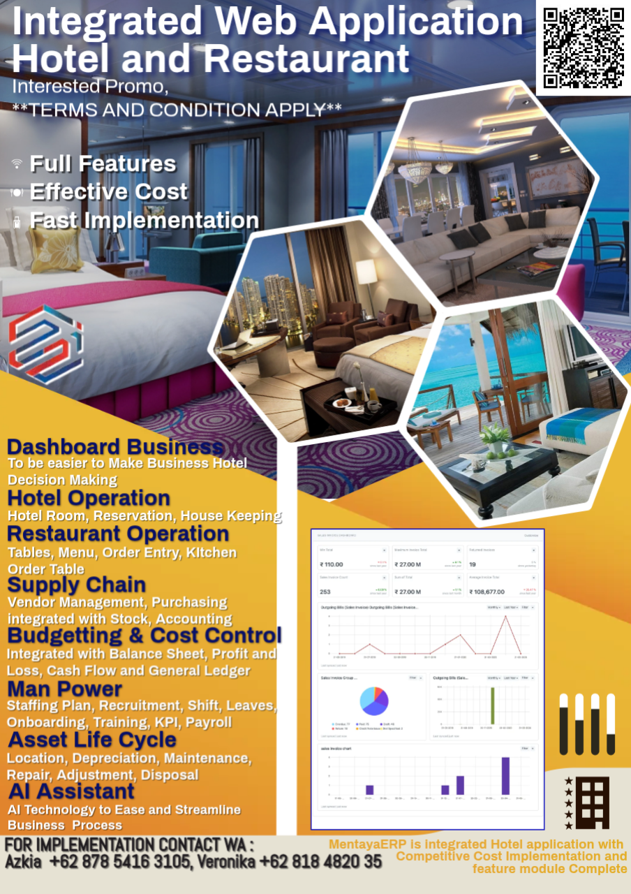 Perangkat Lunak Modern MentayaERP untuk dengan mudah Kelola Hotel, Restoran, Cafe dan FnB